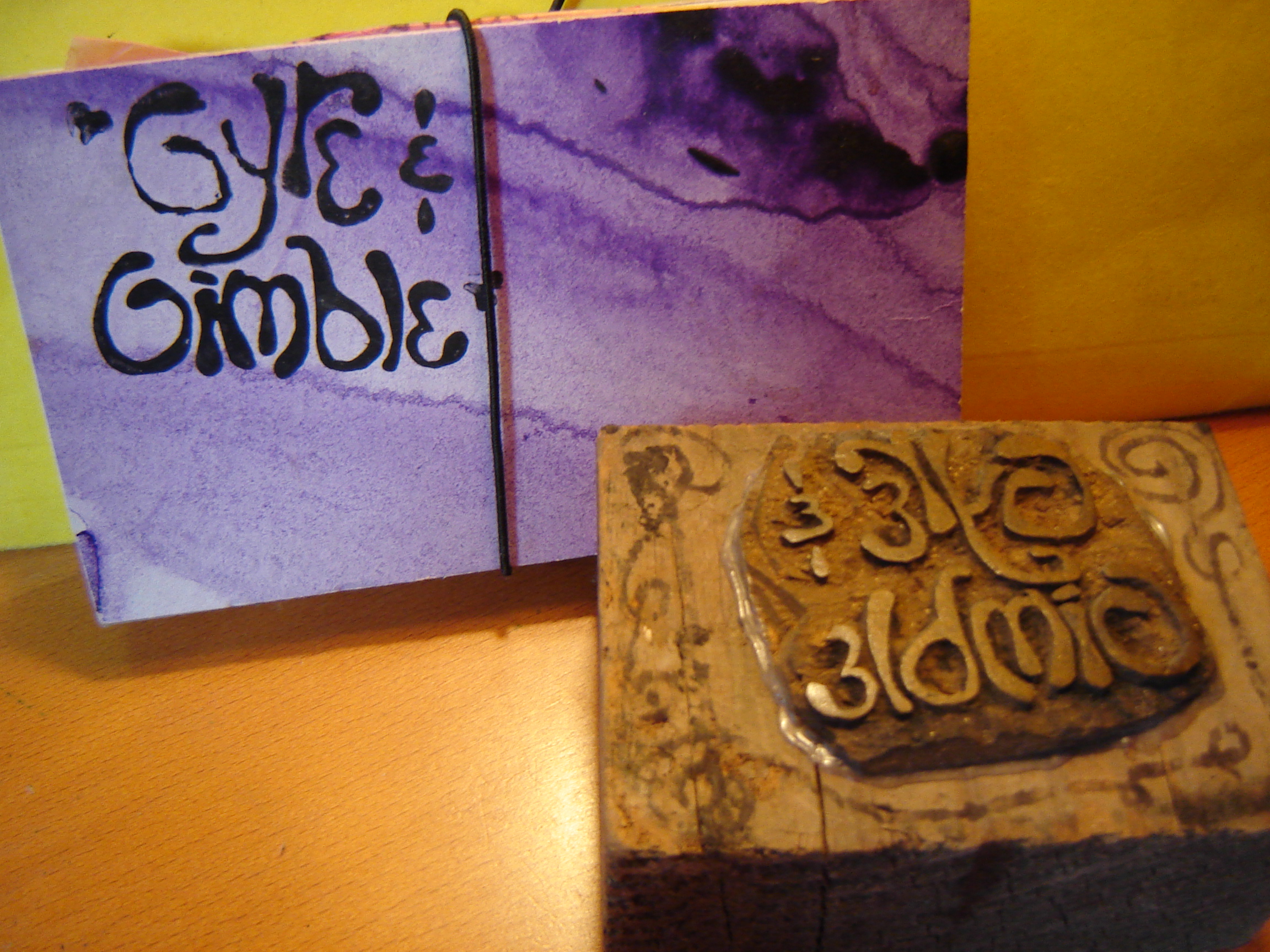 So a year later, I formed a district-wide literary magazine. I did it with Kit and a few other friends, we named it Gyre & Gimble from the Lewis Carroll poem, we managed to acquire at least one member from each of the other two high schools in our district, and we put out a handmade, linoleum-block-printed little folio of high school poetry, with no ads and for little money. It kept us busy enough for awhile, and we certainly never did it again.