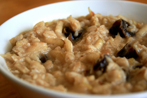 Maybe it really does stick to my ribs. They say oatmeal fills you up and keeps you going all morning. I’ve never been a breakfast eater – I simply don’t feel hunger till I’ve been up for a few hours – but as I get wiser I understand that sometimes food isn’t a treat so much as it is medicine, or fuel, and I have to ingest it even if I don’t desire it. So I’ve been forcing a small breakfast in, and I have observed that oatmeal lasts longer than yogurt or cold cereal.
