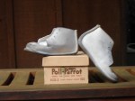 I still have my first pair of shoes. My mother is not a packrat by any means – in fact she’s been known to dispose of treasured items like old letters from friends – but she saved the soft white leather lace-up boots I wore when I started to walk. My father would have saved the shoebox too, and any inserts that accompanied it, but my little white shoes are in a small Poll-Parrot (Brown Blucher Oxfords) box that had nothing to do with them.