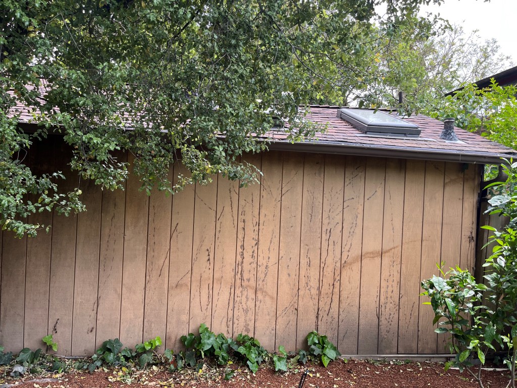 I gazed at painted boards and ivy sign.