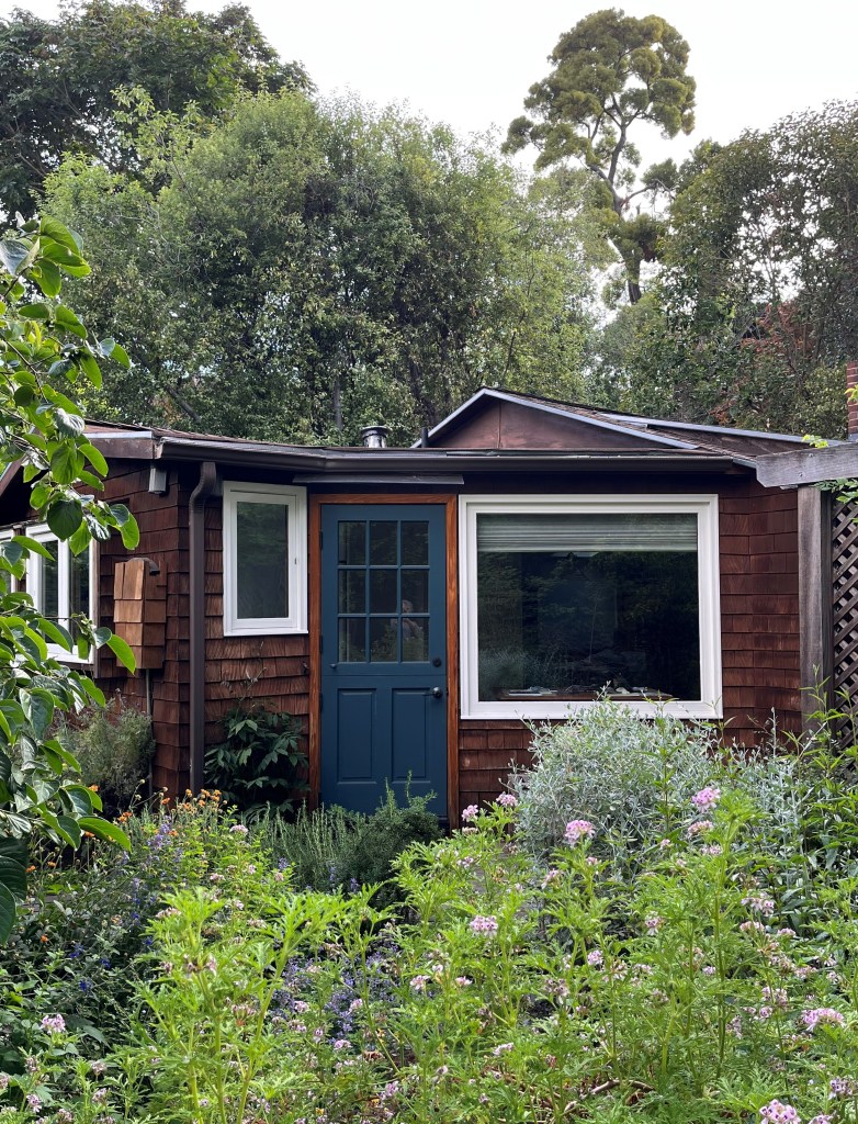 I hunker in a garden, shaded, warm,