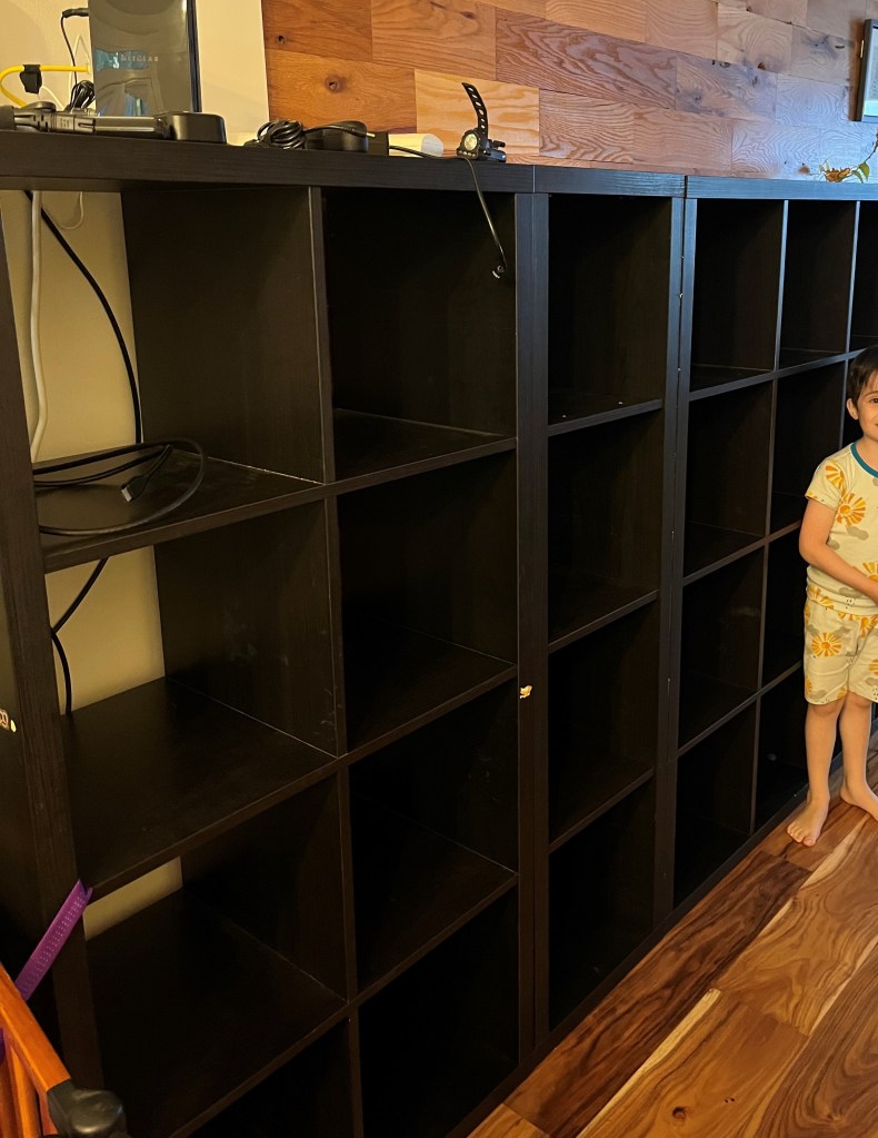 Their shelving held four years of sundry stuff,