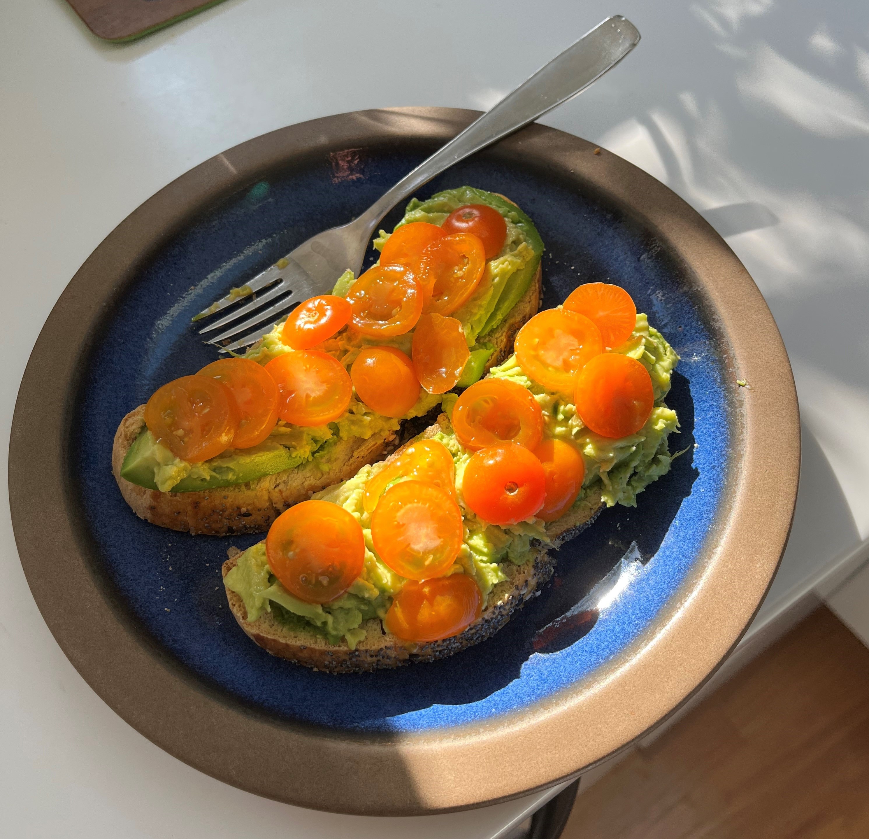 was next-night’s avocado challah toast.