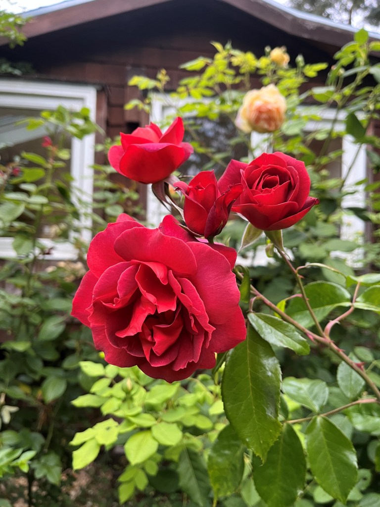 and former-neighbor gifts of plum and rose.