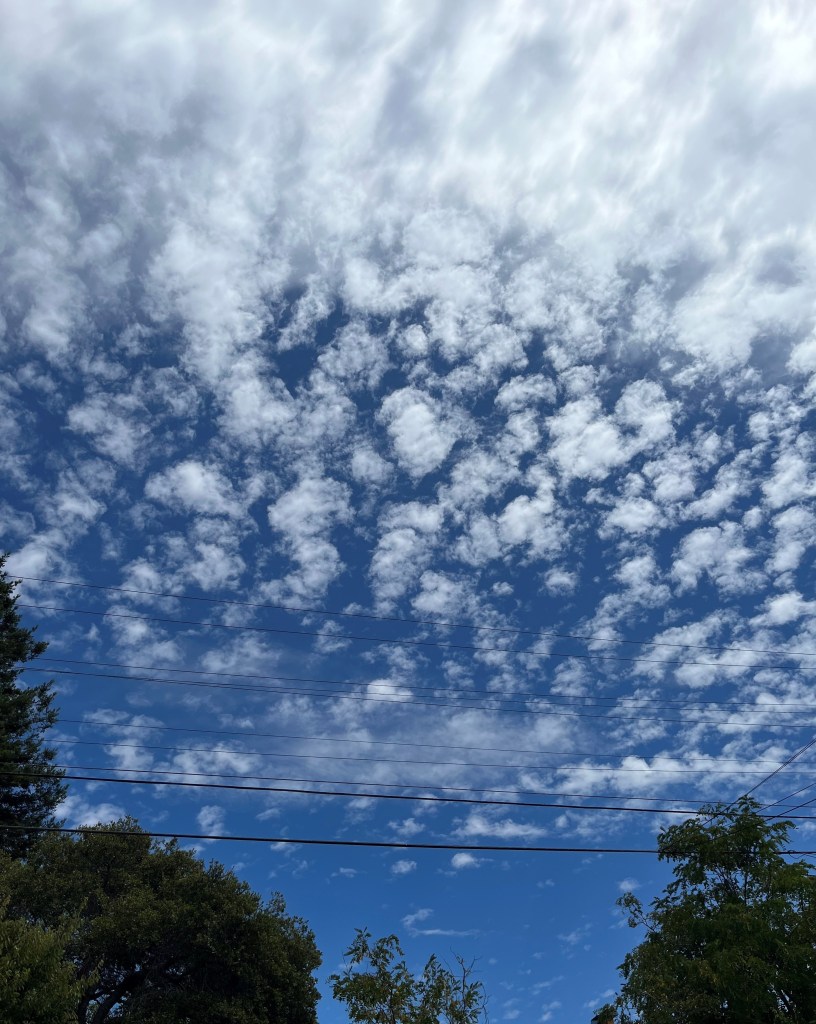 observing summer clouds above the trees.