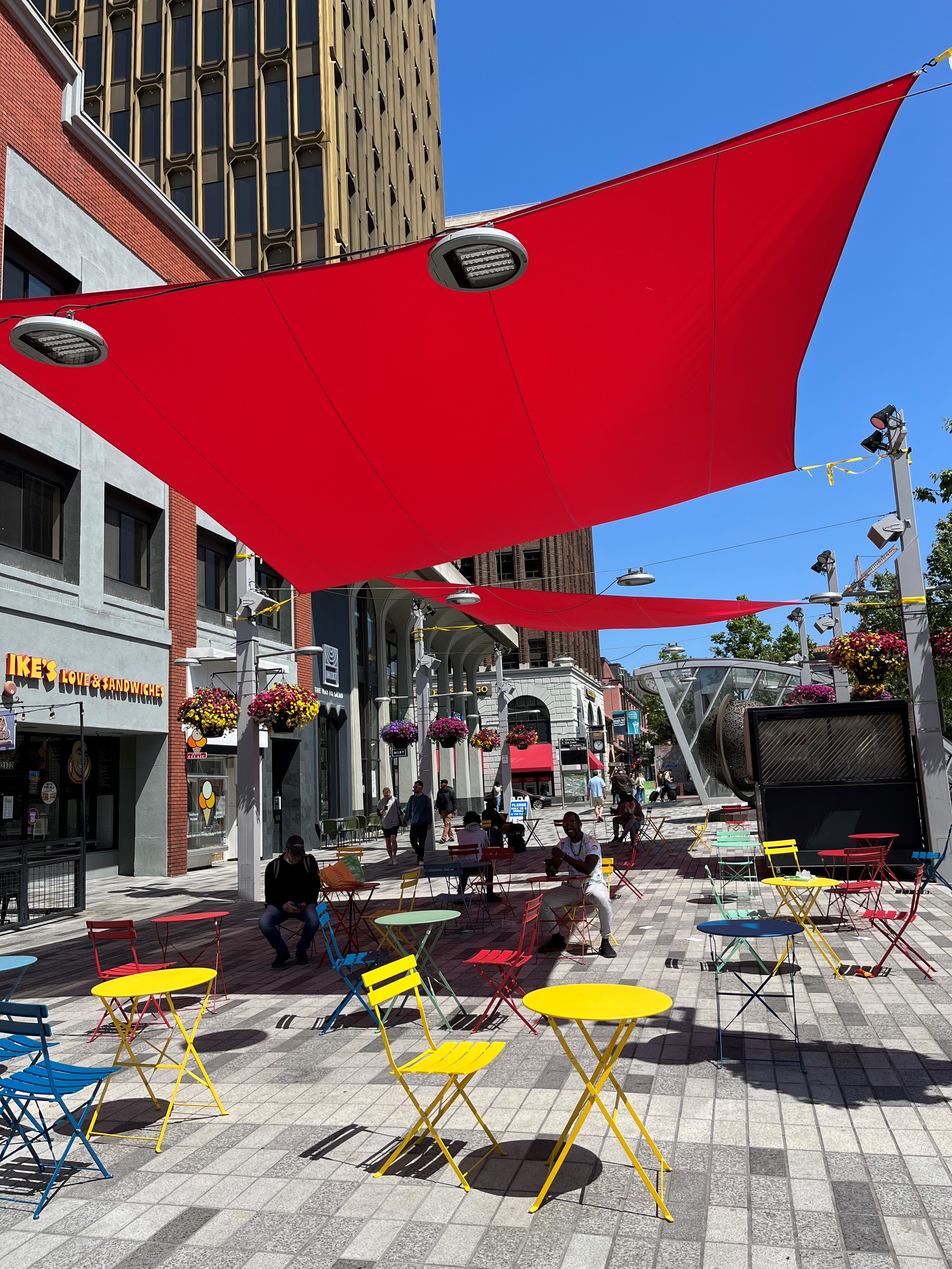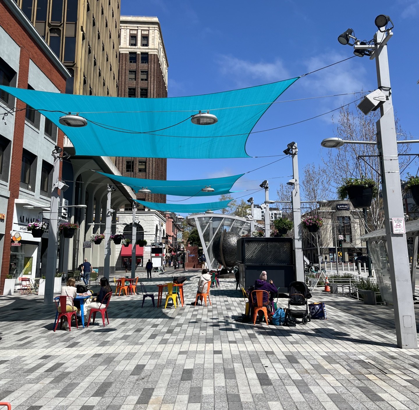 of sun shade sails that stretch above the main