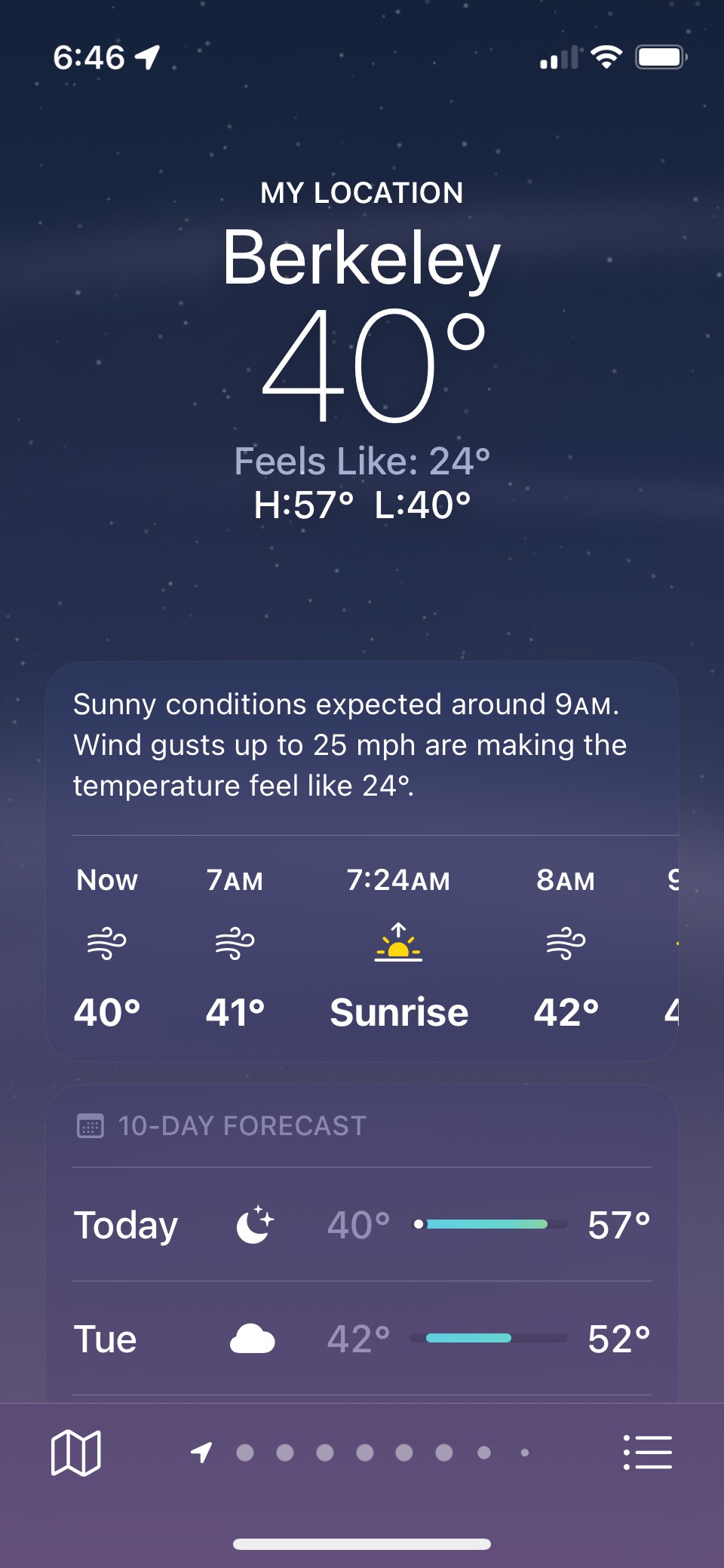 of “feels like 24″ from gale-caused chill.