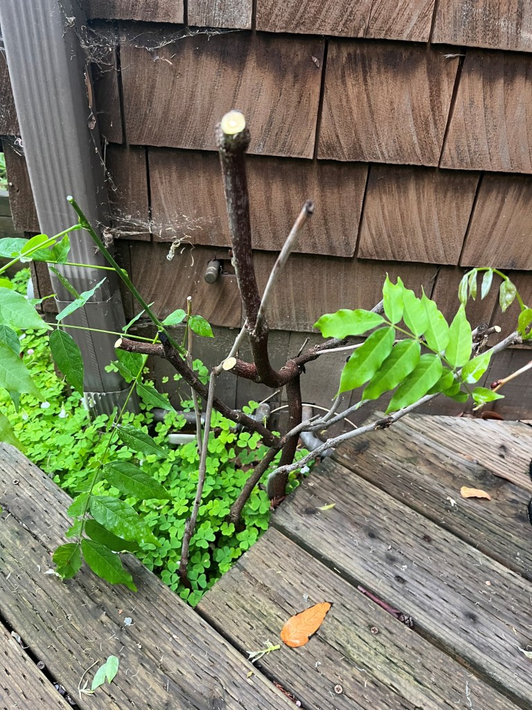 made blossoms droop and leafing branchlets splay